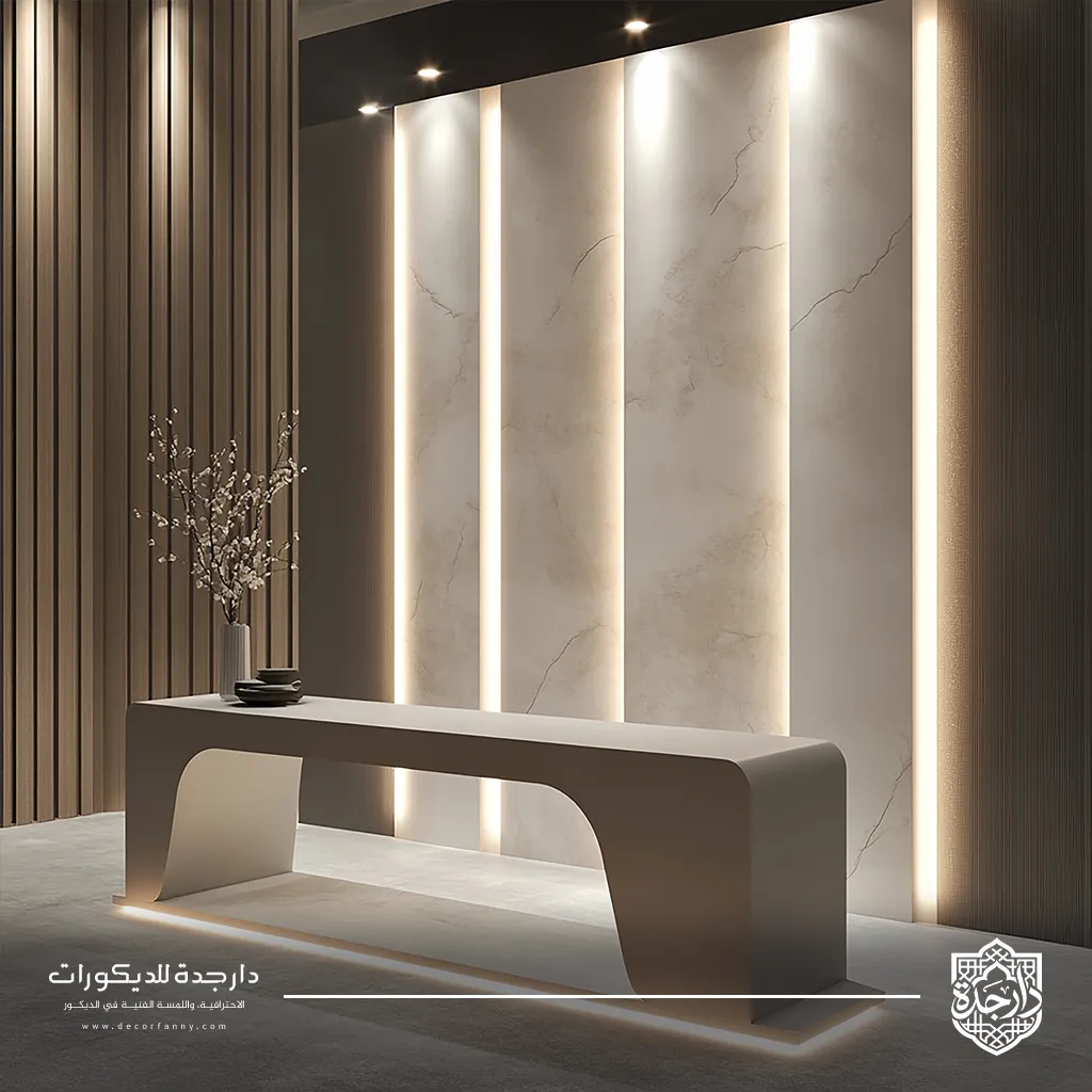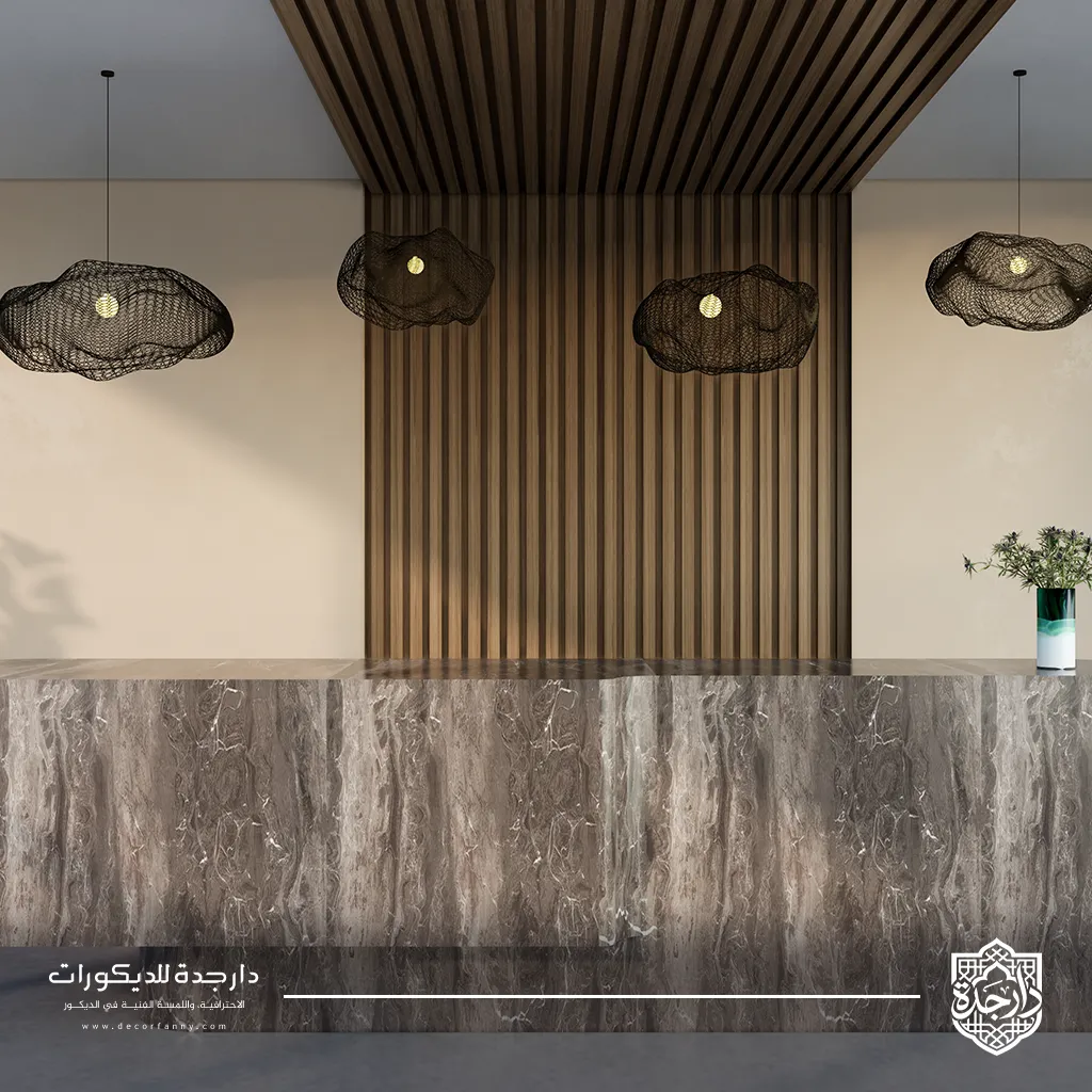 - تركيب بديل الخشب لواجهات الريسيبشن (الاستقبال).
